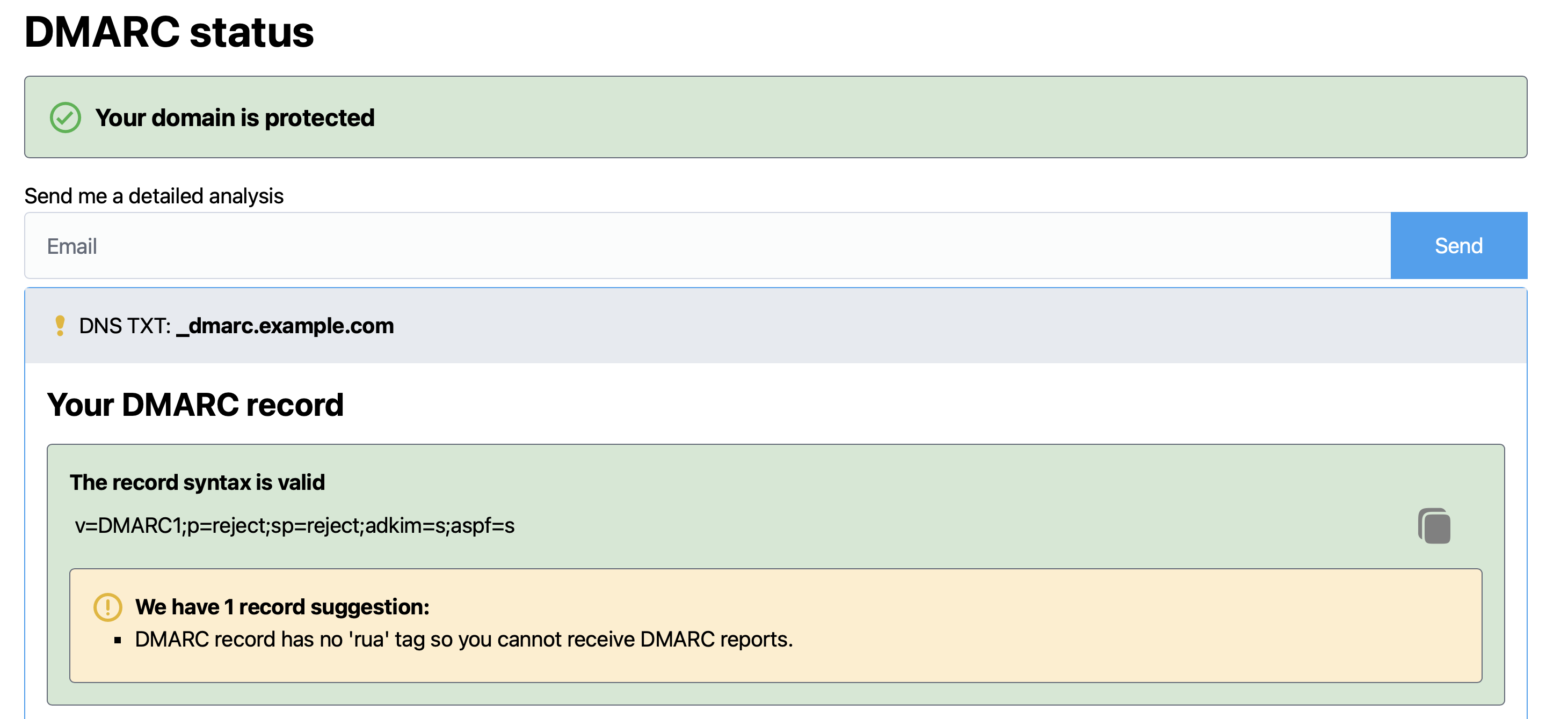 Receive automated alerts for DMARC policy changes or suspicious activity.