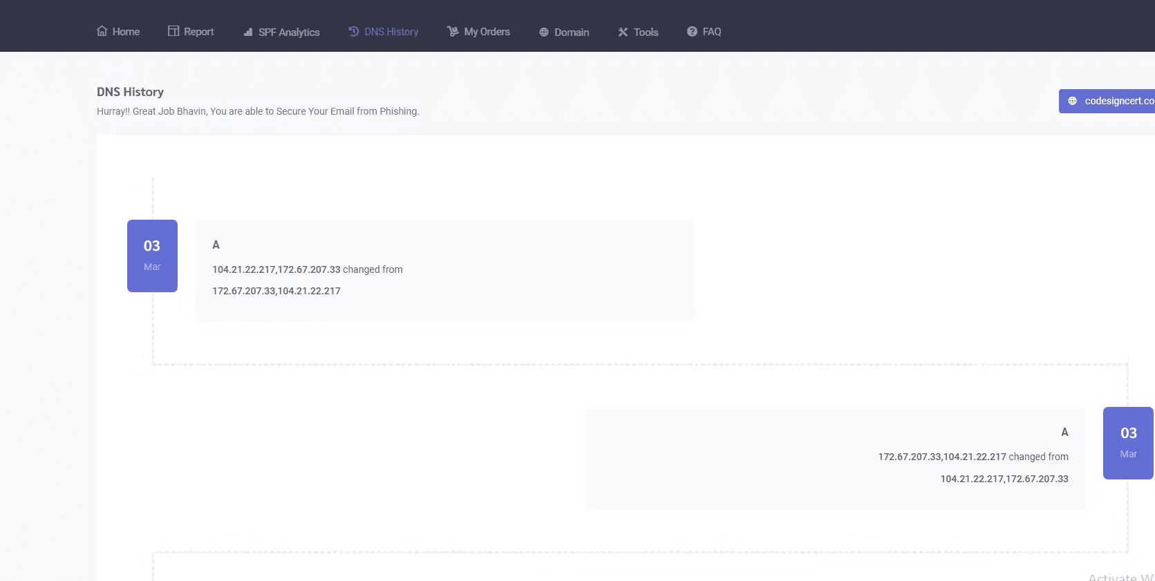 What do you like best about SimpleDMARC?The ui is really simple and easy to understand. If we look at the dashboard they have given plenty of reports and analytics to look at for knowing if your domain is secured or not!What do you dislike about SimpleDMARC?It has DNS history which that could have been done a little better. Other than that all things are relevant and upto the mark.What problems is SimpleDMARC solving and how is that benefiting you?It's protecting your domain and emails again phishing attacks and making your domain authority increase with daily checks